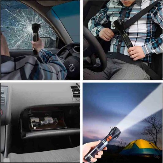 Ideal para campistas, motoristas e qualquer pessoa que queira estar preparada para o inesperado. A Lanterna multifunções é leve, portátil e fácil de usar. Tenha sempre à mão uma lanterna forte, uma ferramenta de segurança e uma fonte de energia emergencial com você.